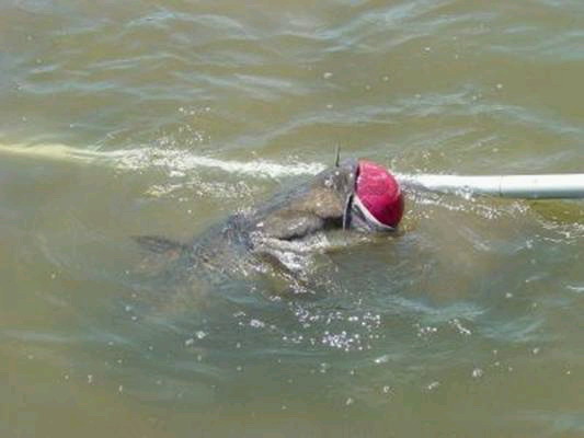 From Panama to the Great Lakes, Bill Driver's done pretty well fishing over the past 50 years. Now he's wondering if he'd have done even better with a different kind of bait. "I never considered using a kid's basketball," Driver said. "Maybe I should have." Friday afternoon, Driver was standing on the deck of his house near 119th Street West and Central when he saw an eight-inch ball floating in Sandalwood Lake. Noticing the ball wasn't floating normally, Driver wandered to his dock for a closer look. A catfish had its mouth stuck around the ball. Driver hollered for his wife, Pam, to get a camera while he unrigged the sail from his nine-foot boat, wading into the lake and corralling the fish toward shore with the sail as a seine. Several times, the flathead tried to dive, only to have the ball buoy it back to the surface. The fish appeared to be exhausted and offered little resistance once in the shallows. Things may have gone easier had the fish the strength to struggle. "I just couldn't pull that ball out of its mouth," Driver said. "I was lifting up out of the water as best I could by the ball. I finally sent my wife to the house to get a knife." Driver carefully deflated the ball. Estimated at 50 pounds, the fish swam toward the deepest part of the lake. Driver has no plans of targeting the fish in the near future. Instead, he'll probably continue to fish for the bass and panfish that swim within the one-acre lake. "I guess I might try fishing with a golf ball," Driver said. "Smaller fish, smaller bait."